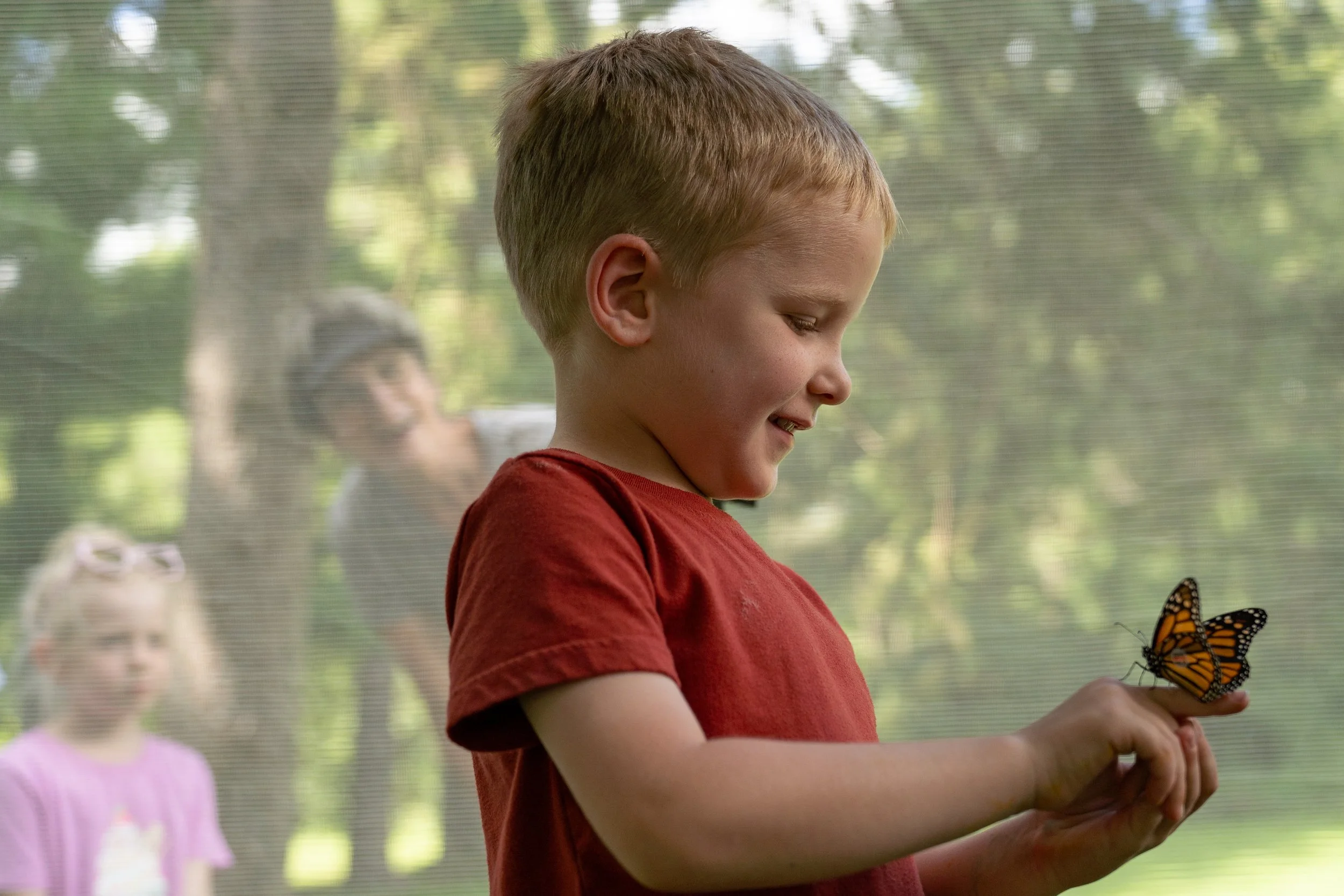 Bennett Ignash, 4, holds a monarch butterfly inside the butterfly tent during the Quarry Hill Monarch Festival on Thursday, Aug. 21, 2025 in Rochester. (Post Bulletin)